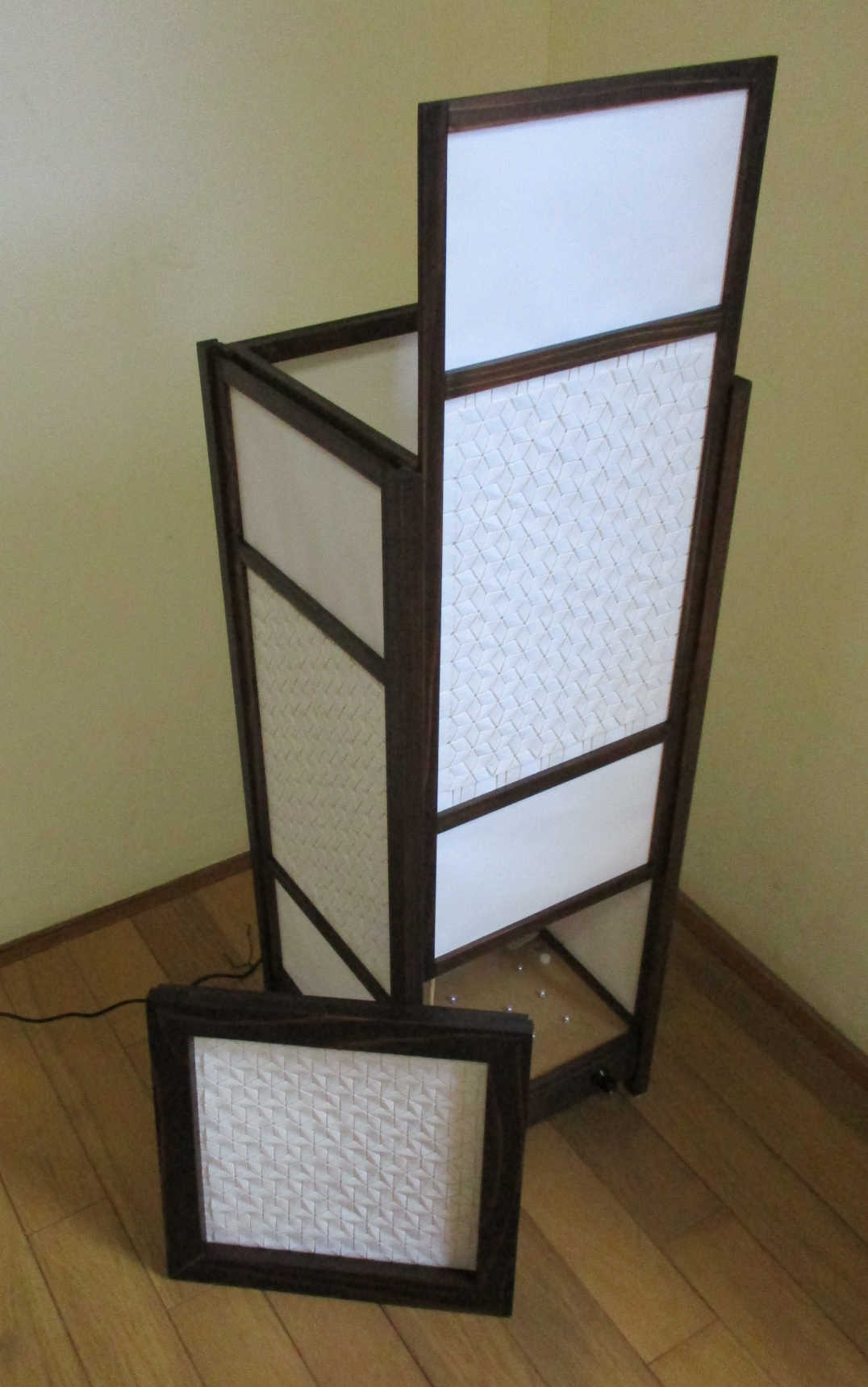 「平織り」と呼ばれる折り紙の技工を用いて映し出される、独特な光の陰影をお楽しみください。